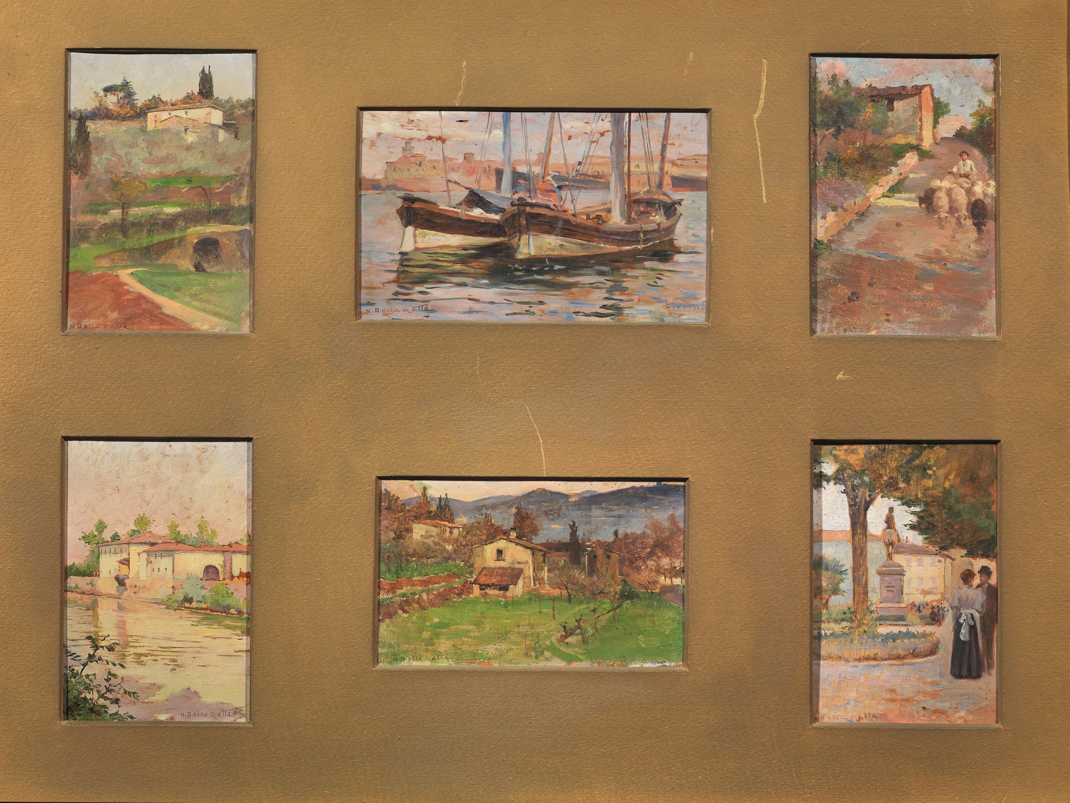 Anacleto Dellagatta Six Works Scorcio Di Casolare In Campagna Scorcio Di Case Barche Campagna Toscana Pastorello Con Gregge Piazza Con Figure Mutualart
