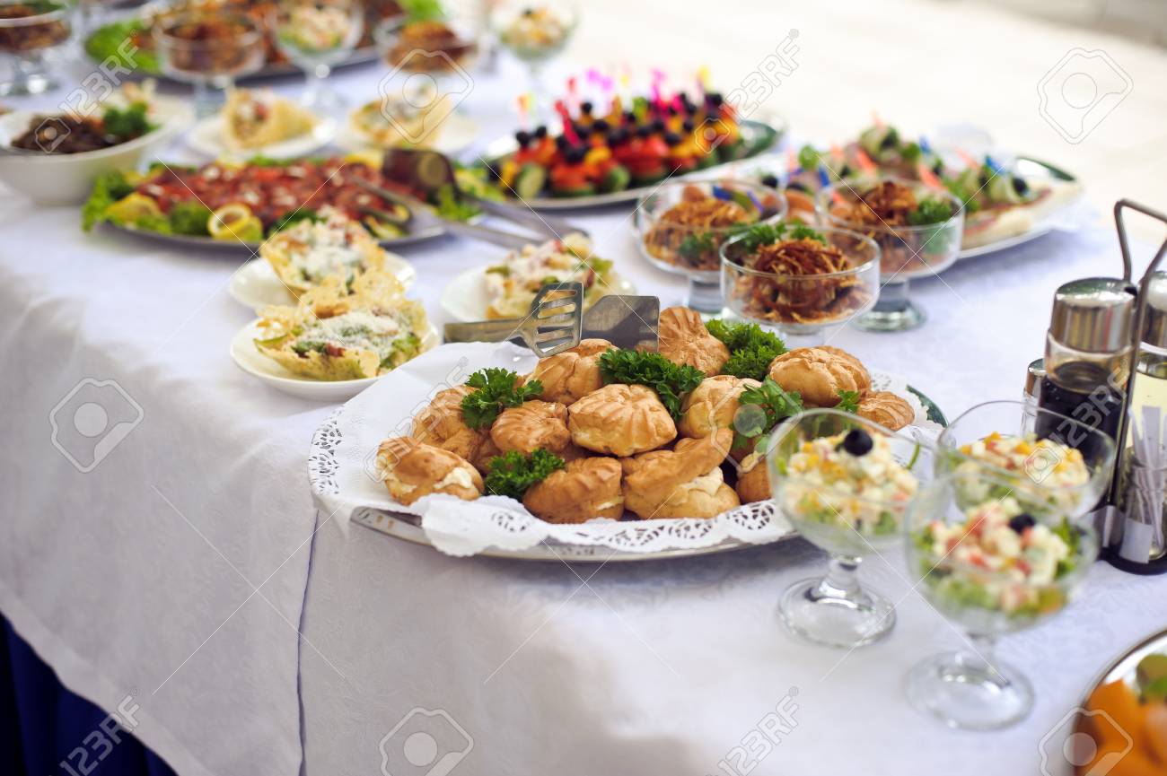 Immagini Stock Servizio Di Catering Tabella Del Ristorante Con Il Cibo Enorme Quantita Di Cibo Sul Tavolo Piatti Di Cibo Ora Di Cena Il Pranzo Image 61668682