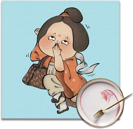 Stile Cinese Divertente Retro Donna Tovagliette Resistenti Al Calore Arancio Rosso 12 X12 Pollici Tovagliette Per