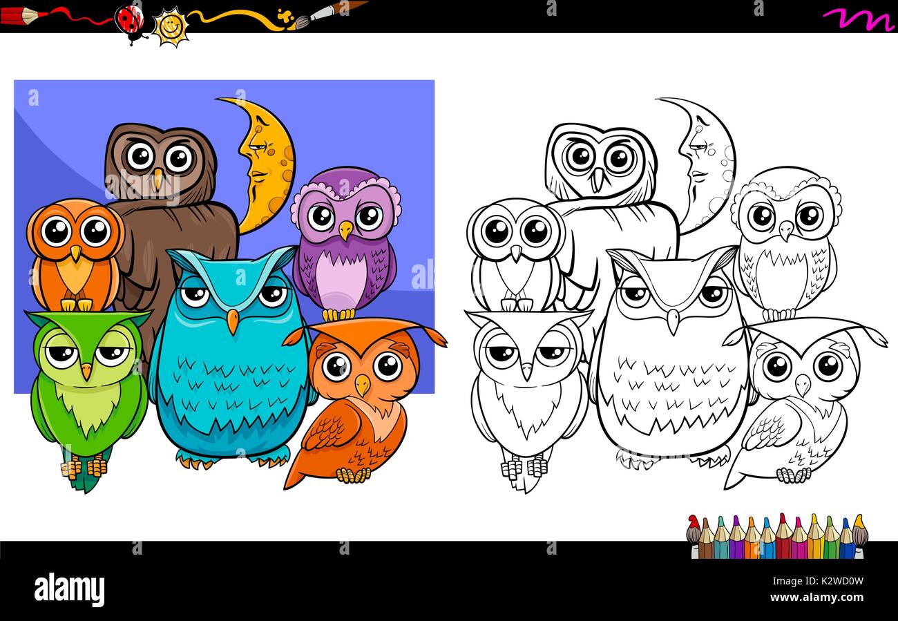 Cartoon Illustrazione Delle Civette Bird Gruppo Di Caratteri Libro Da Colorare Attivita Immagine E Vettoriale Alamy