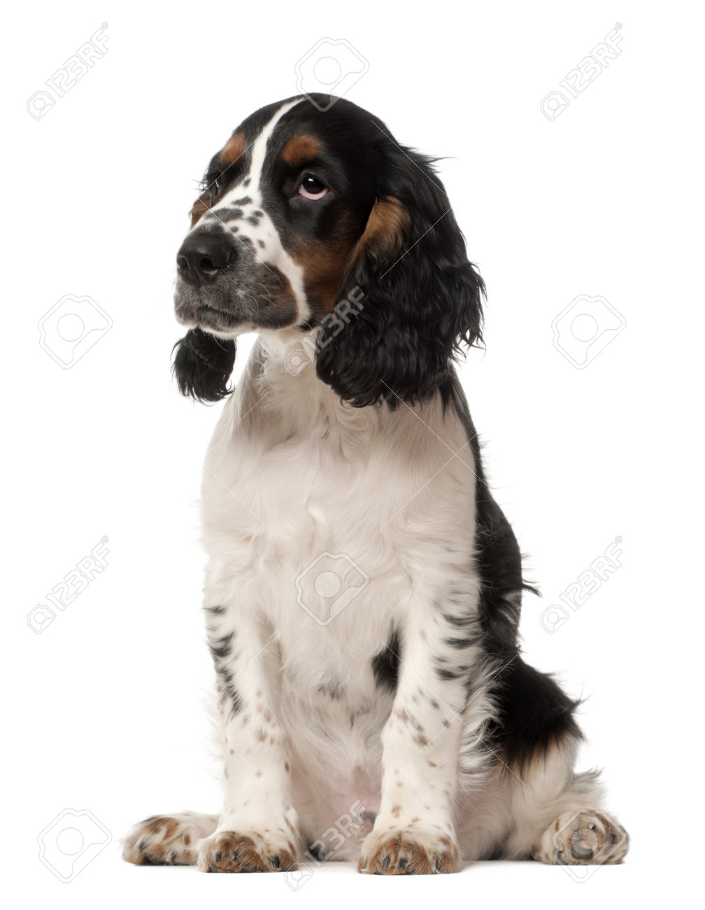 Immagini Stock Cucciolo Di Cocker Spaniel Inglese 4 Mesi Di Eta Seduto Su Sfondo Bianco Image 14275485