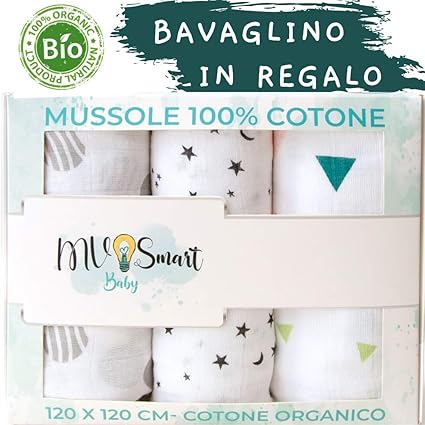 Copertina Neonati Piu Bavaglino Regalo Primavera Estate Di Mv Smart Baby Lenzuola Culla Mussole Neonato Smart Cotone Biologico Certificato Gots 3 Copertine Di Mussola 120x120 Prima Infanzia Coperte E Copertine