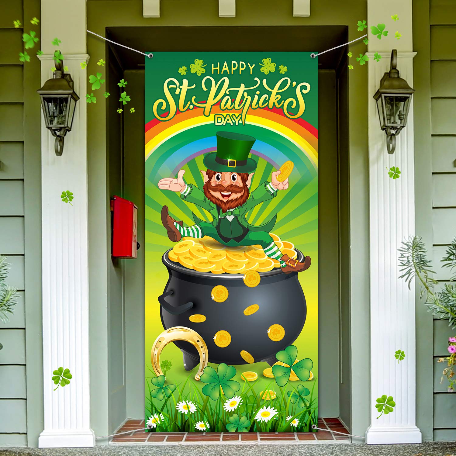 Articoli Per Feste E Compleanni Happy St Acetoselle Verdi Fortunate Sfondo Arcobaleno Di Primavera Banner Di Cappello Leprechaun Moneta Doro Pentola Per Festa Irlandese Patricks Day Copertina Per Porta Giochi E Giocattoli