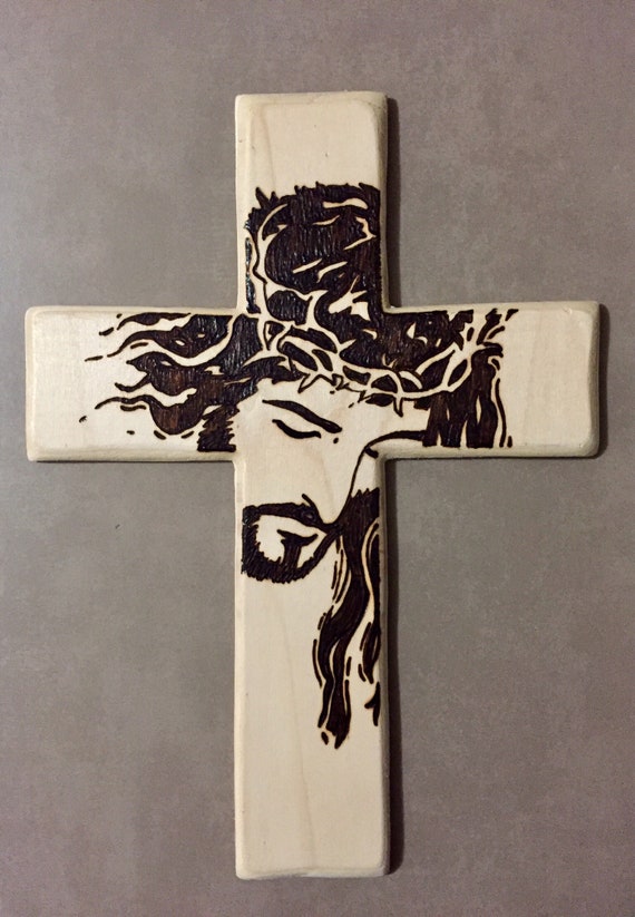 Crocifisso Con Volto Di Gesu Cristo Pirografia Su Legno Etsy