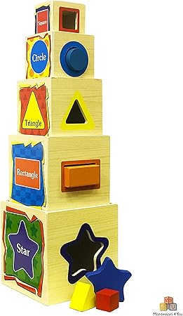 Montessori 4 You Torre Di Cubi Wisdom Shape Set Box Amazon It Giochi E Giocattoli