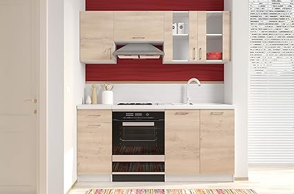 Arreditaly Cucina Componibile Con Top Bianco Completa Di Vetrina Mobili Pensili Sospesi E Mobili Base Cucinino Moderno In Laminato Da 180 Cm Da Incasso Rovere Chiaro Amazon It Casa E Cucina