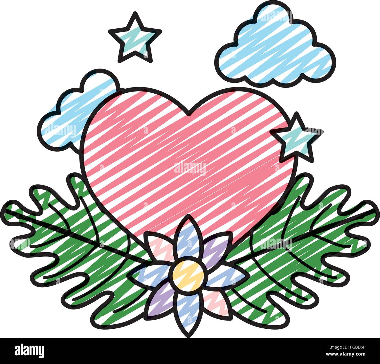 Doodle Cuore Con Stelle Ecologia E Foglie Di Fiori Immagine E Vettoriale Alamy