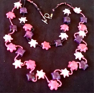 Fiori Quadri E Stelle Doppia Lunga Collana Di Ceramica Manufatta In 3 Colori Ebay