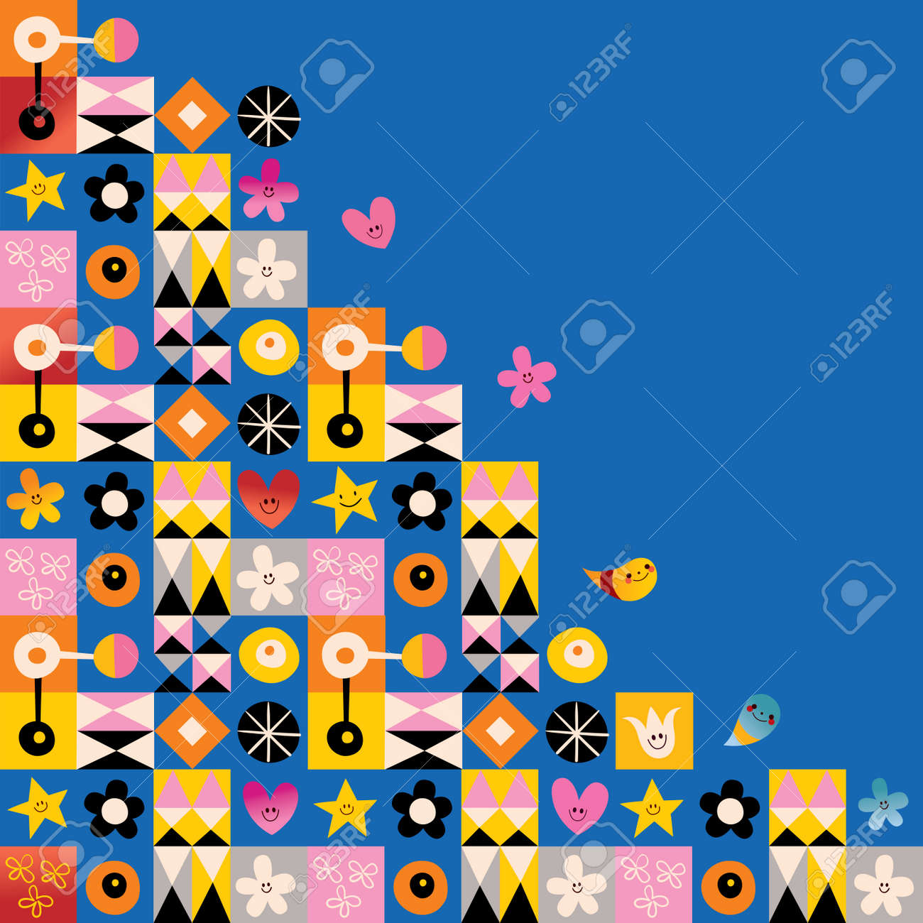 Vettoriale Elemento Di Design Di Sfondo Retro Arte Cuori Stelle E Fiori Image 54758745