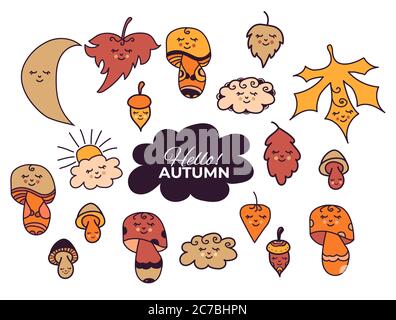 Set Di Bosco Isolato Di Piante E Funghi Nel Disegno Stile Illustrazione Di Vettore Per Il Tuo Design Immagine E Vettoriale Alamy