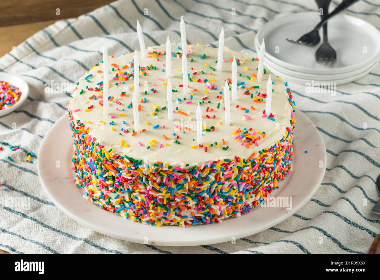 Dolci Fatti In Casa Torta Di Compleanno Con Candele Pronto A Servire Foto Stock Alamy