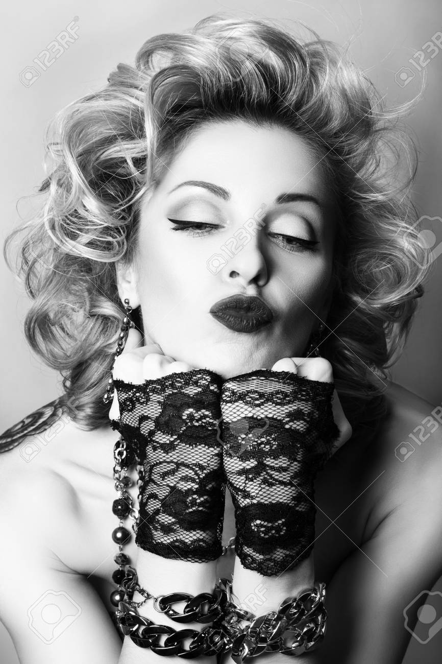Immagini Stock In Stile Retro Ritratto In Bianco E Nero Di Adulti Sexy Donna Giocosa Soffia Un Bacio Foto In Bianco E Nero Image 37653618