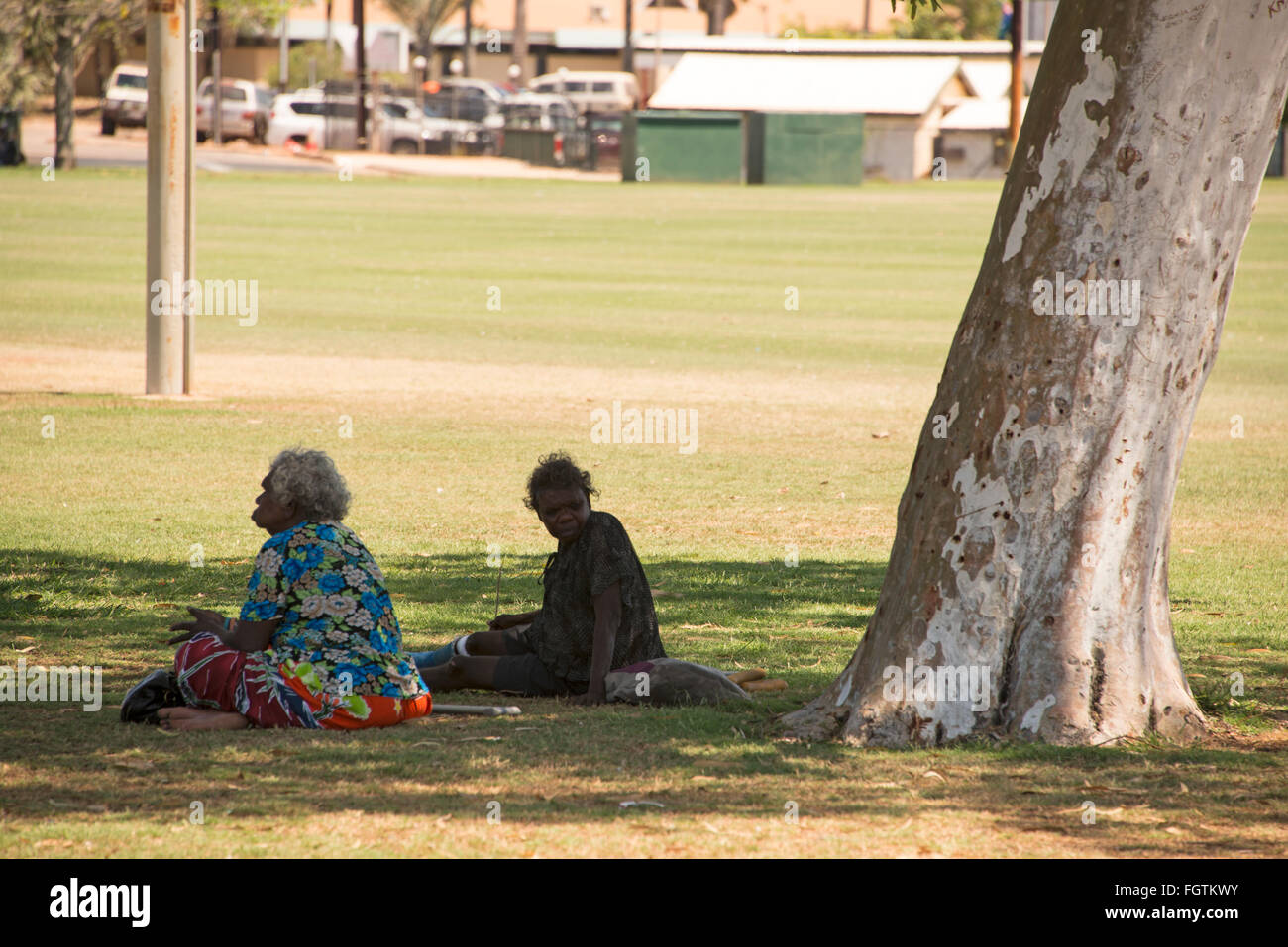 Un Paio Di Donne Aborigene Riparo Dal Calore Sotto Un Albero In Un Parco Di Broome Un Costiere Madreperlante E Citta Turistica In T Foto Stock Alamy