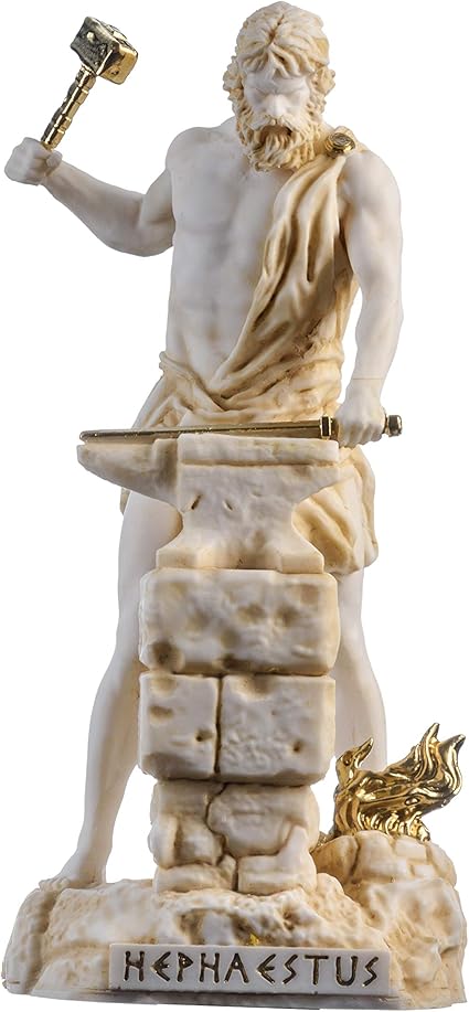 Beautifulgreekstatue Efesto Dio Del Fuoco Lavorazione Dei Metalli E L Arte Della Scultura Tono Oro 23 Cm Amazon It Casa E Cucina
