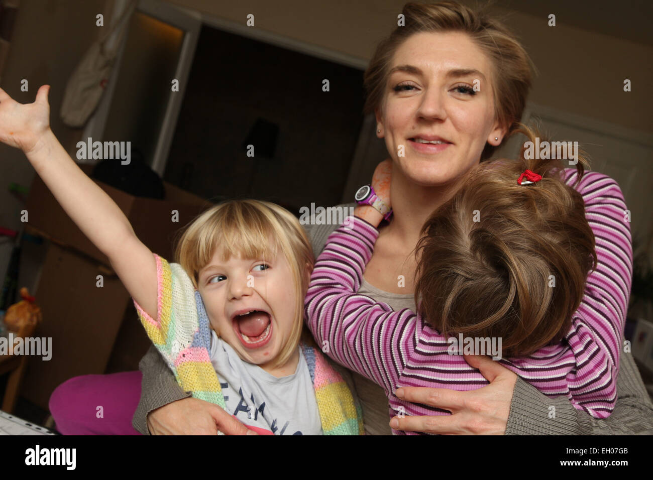 Ai Bambini Di Facce Buffe Con La Madre Modello Rilasciato Foto Stock Alamy