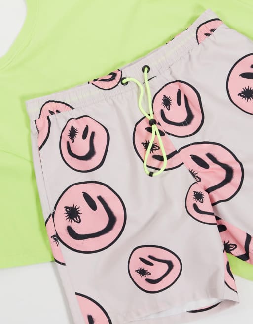 Asos Design Pantaloncini Da Bagno Con Stampa Di Faccine Felici Asos