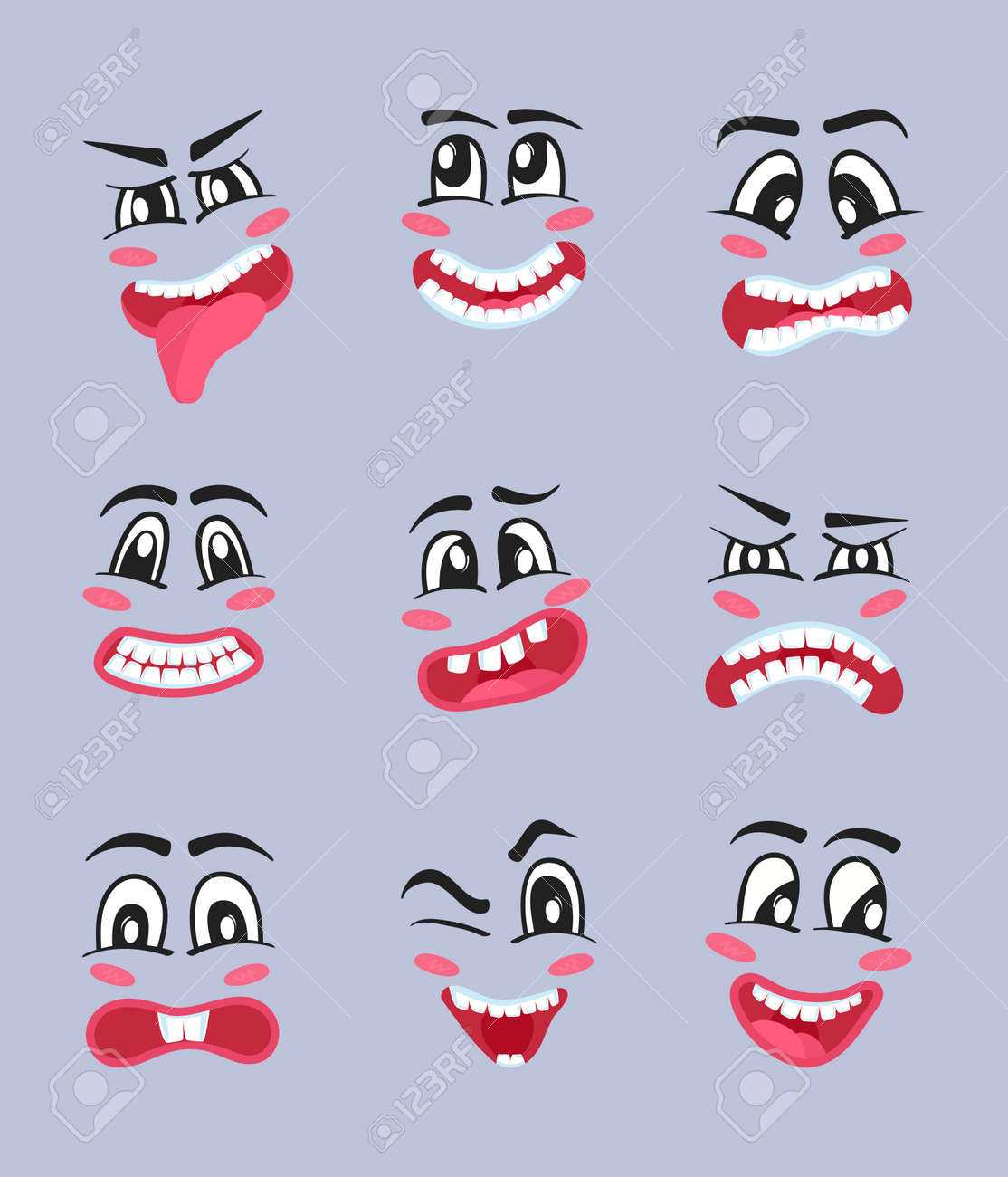 Vettoriale L Insieme Del Fumetto Dei Caratteri Di Emoji Ha Isolato L Illustrazione Di Vettore Felicita Rabbia Gioia Paura Sorpresa Smiley Occhi E Bocca Divertente Emoticon Comica Faccine Carini Con Diverse Espressioni Facciali