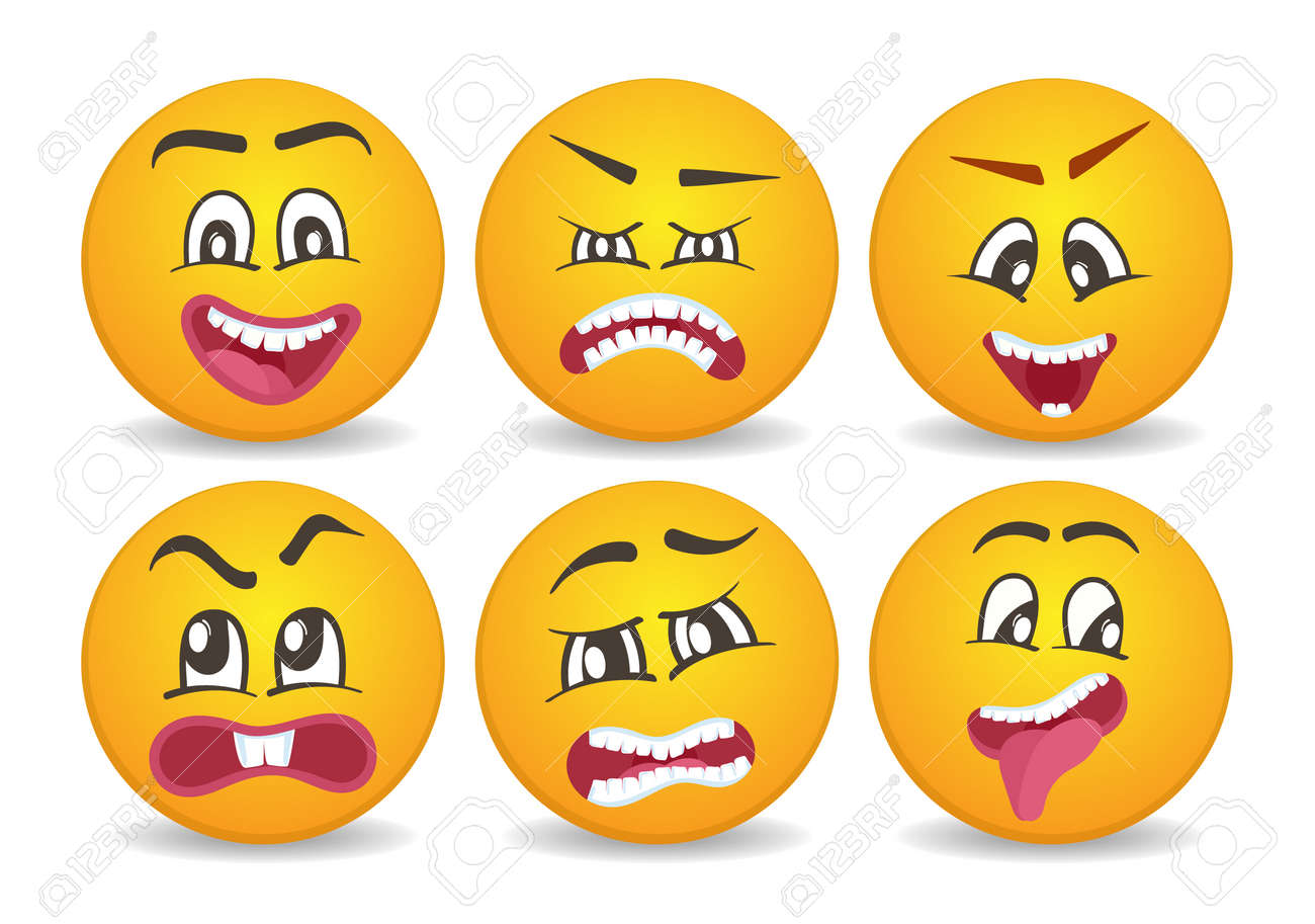 Vettoriale Emoticon Con Diverse Espressioni Facciali Bloccate Felicita Rabbia Gioia Furia Tristezza Giocosita Paura Sorpresa Facce Gialle Comiche Personaggi Emoji Rotondi Insieme Isolato Sveglio Dell Icona Di Espressioni Facciali Di Vettore