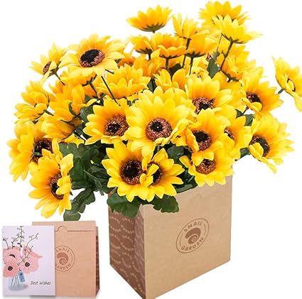 Snailgarden 6 Mazzi Di Fiori Artificiali Di Girasole Bouquet Di Fasci Di Girasole Realistico Di 42 Teste Di Seta Con Biglietto Di Auguri E Sacchetto Di Carta Marrone Per La Decorazione Domestica Amazon It Casa