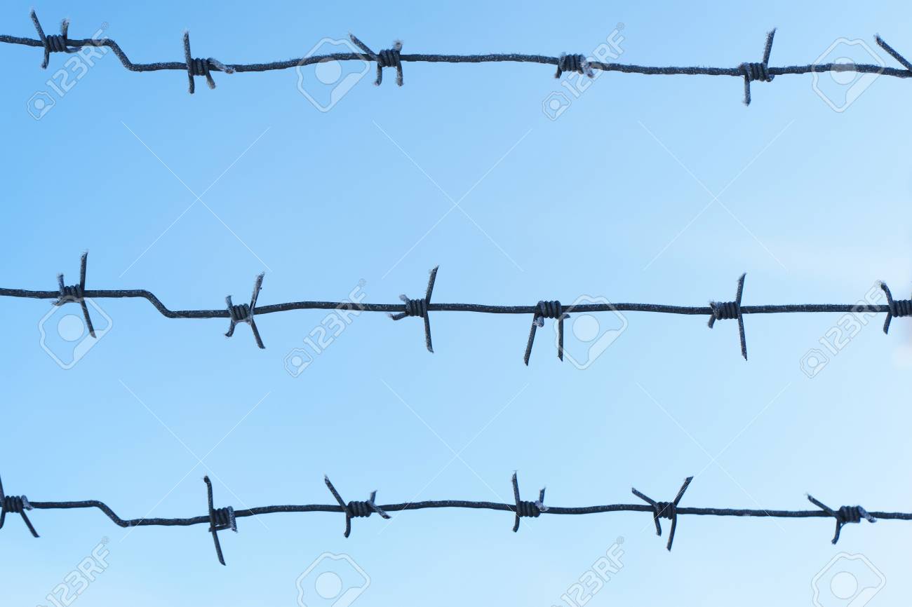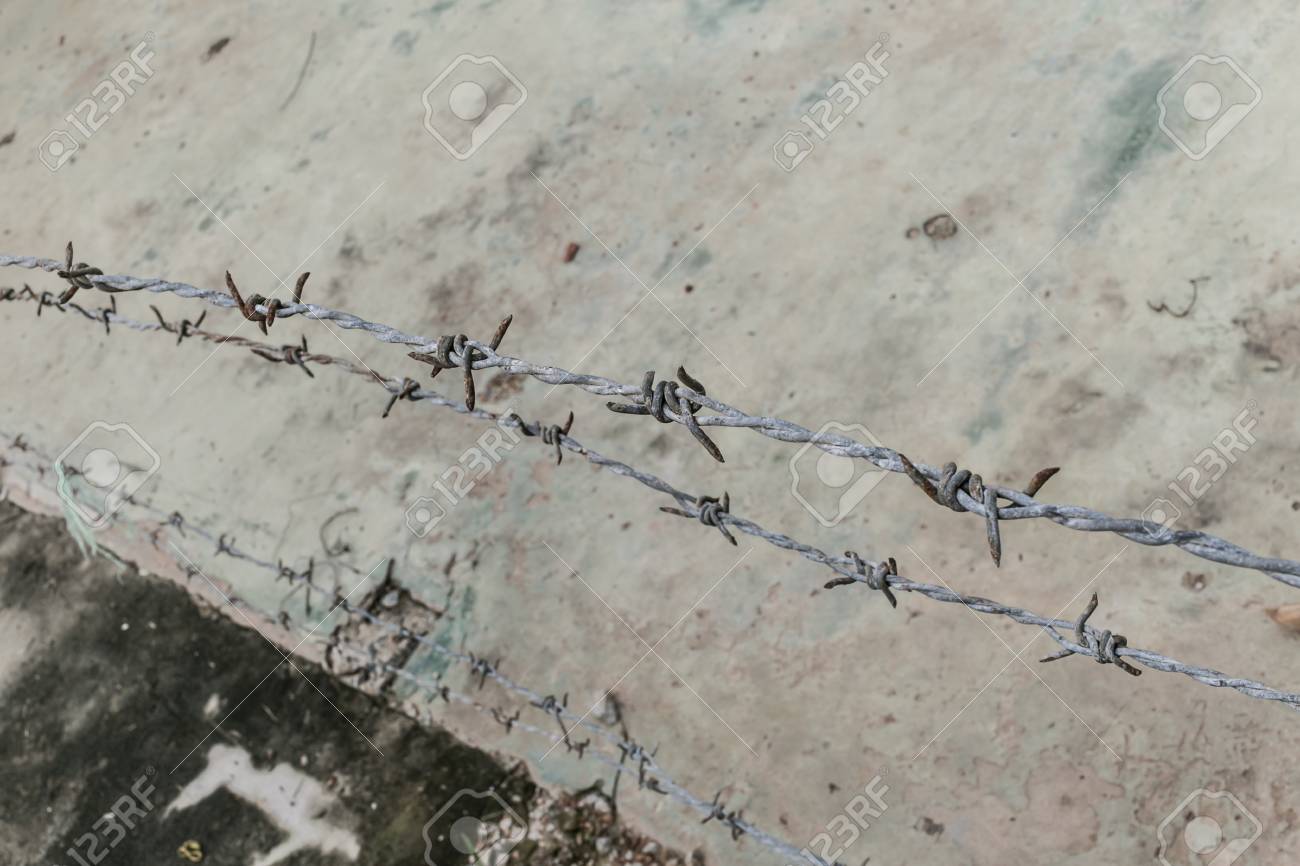 Una Linea Di Filo Spinato Grigio Con Tre Nodi Immagine Stock Immagine Di Giorno Militare 145129957