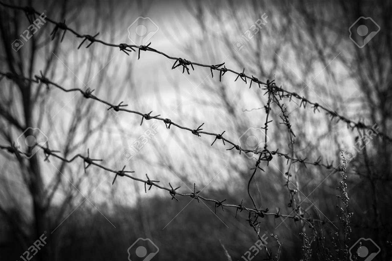 Immagini Stock Metallo Arrugginito Confine Di Filo Spinato Con Le Spine Vintage Bianco E Nero Concetto Di Liberta Image 62127269