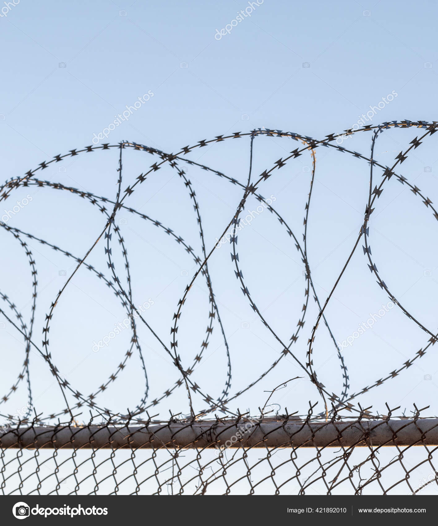 Le Spirali Consentono Di Filo Spinato Contro Il Cielo Fotografie Stock E Altre Immagini Di Acciaio Istock