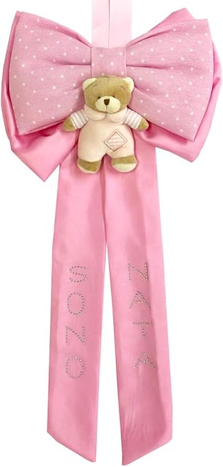 Nascita Appendino A Forma Di Coccarda Rosa Grande A Fiocco Bimba Diam 27 Rosa Ebay