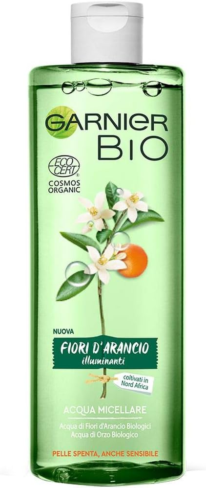 Garnier Bio Acqua Micellare Ai Fiori D Arancio Illuminanti Formula Arricchita Con Acqua Di Orzo Biologico E Glicerina Vegetale 400 Ml Confezione Da 1 Amazon It Bellezza