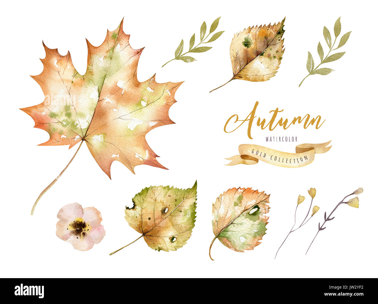 Set Di Foglie Di Autunno Disegnata A Mano Di Pittura Ad Acquerello Su Sfondo Bianco Foto Stock Alamy