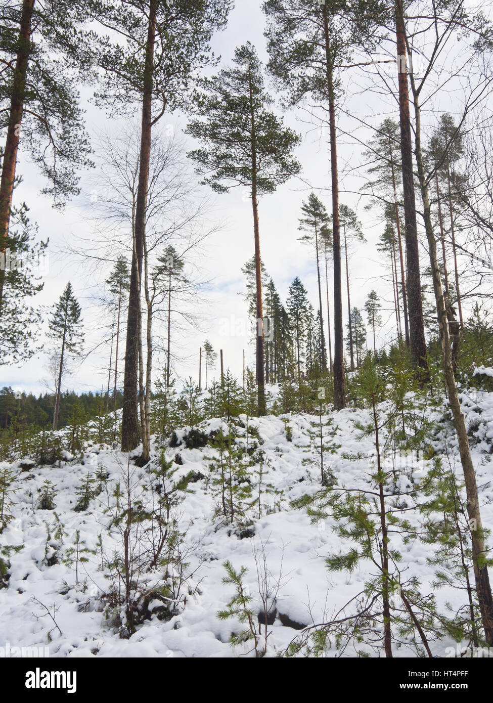 La Foresta Di Conifere Nella Capitale Norvegese Oslo In Inverno Selvicoltura Moderna Lascia Alcuni Alberi Di Pino In Piedi Mentre Nuovi Alberi Iniziano A Crescere Foto Stock Alamy