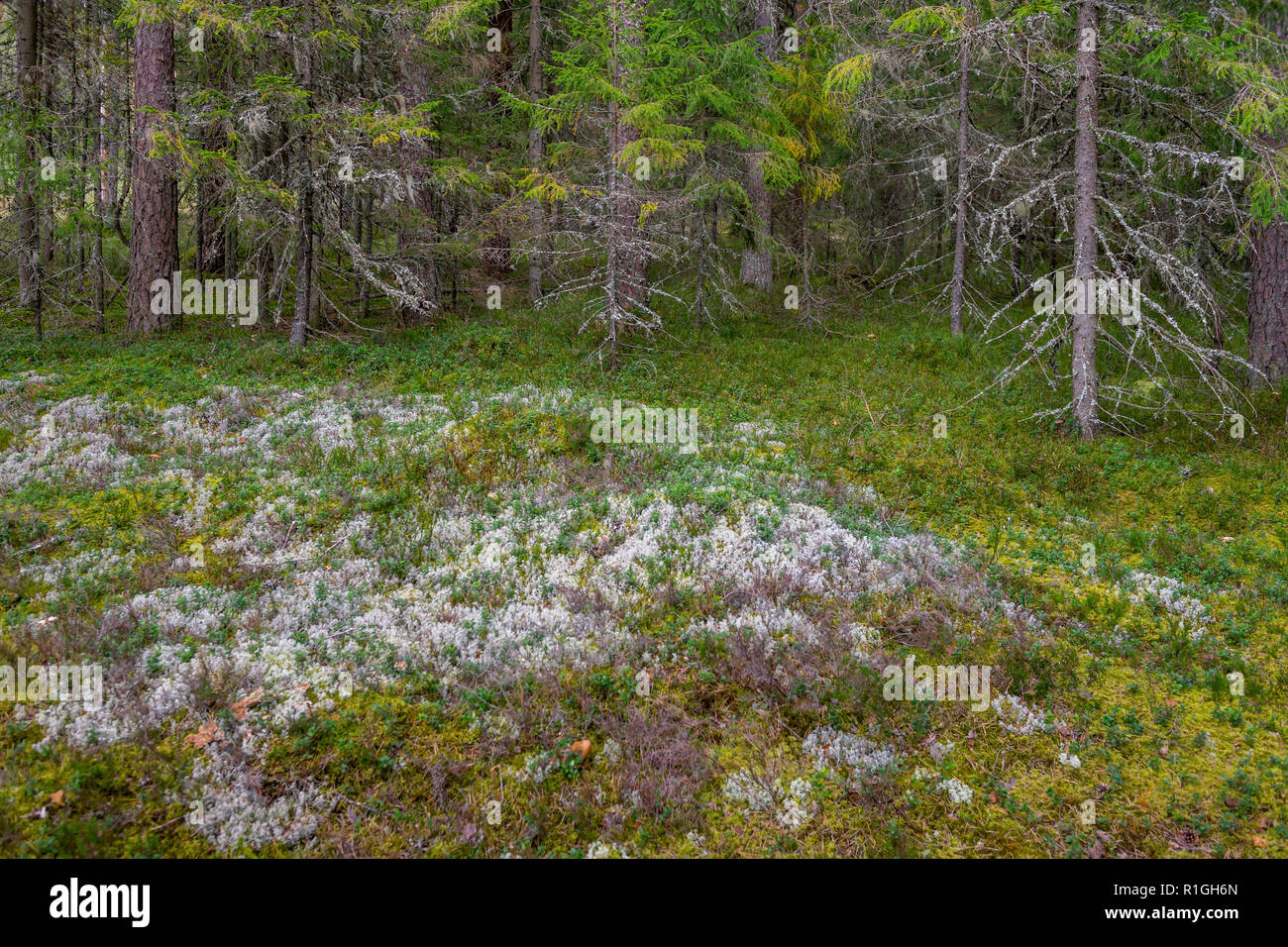 Mossy La Foresta Di Conifere In Lettonia Abeti E Pini Il Bosco Misto Di Pini E Abeti La Foresta Di Conifere Con Abeti Rossi E Pini Foto Stock Alamy