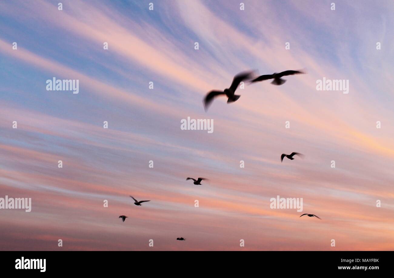 Gabbiani In Volo In Un Colorato Il Cielo Al Tramonto Foto Stock Alamy