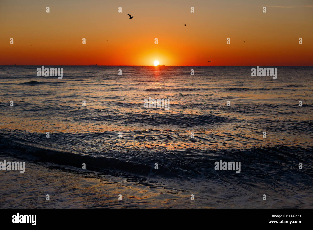 Immagini Stock Bellissima Spiaggia Al Tramonto Con Volare Mare Gabbiano Silhouette Al Mare Strand Helderberg Citta Del Capo Western Cape Sud Africa Image 58288192