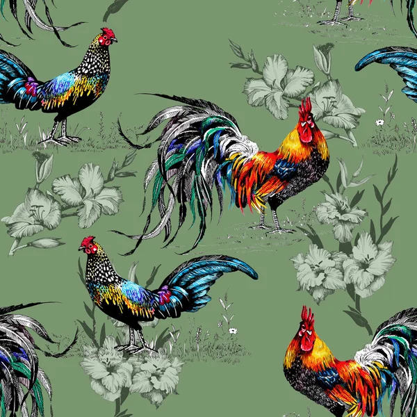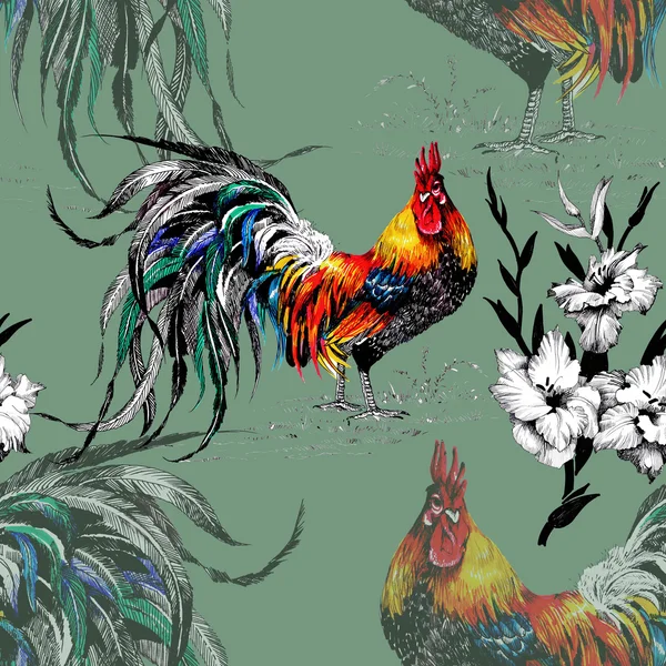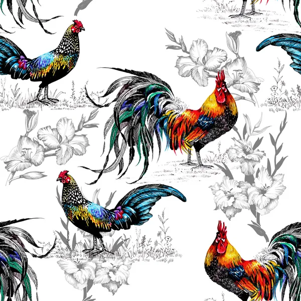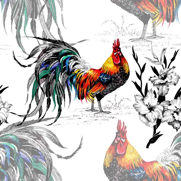 Gallina Gallo Illustrazione Galli Colorato Fattoria Seamless Giallo Mano Modello Fondo Disegnato Galline Uccelli Canstock