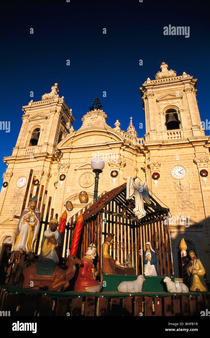 Il Decor Del Presepe O La Grotta Dove Gesu Bambino E Nato Messo Fuori Della Chiesa In Xaghra Per Natale A Malta Foto Stock Alamy