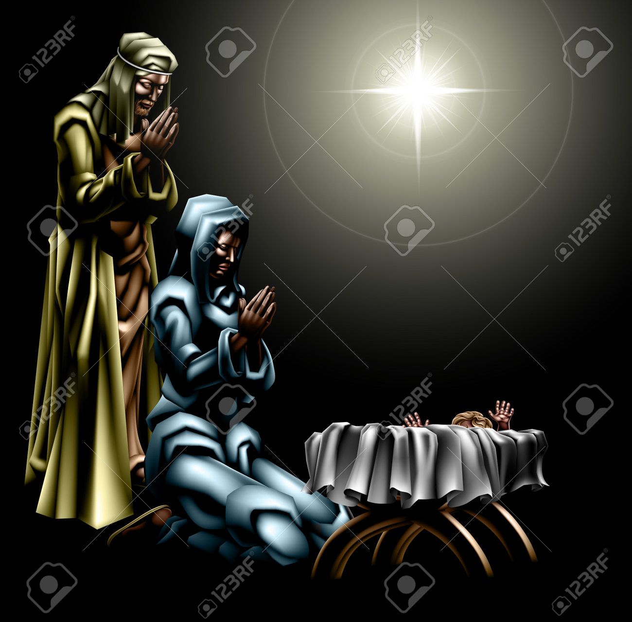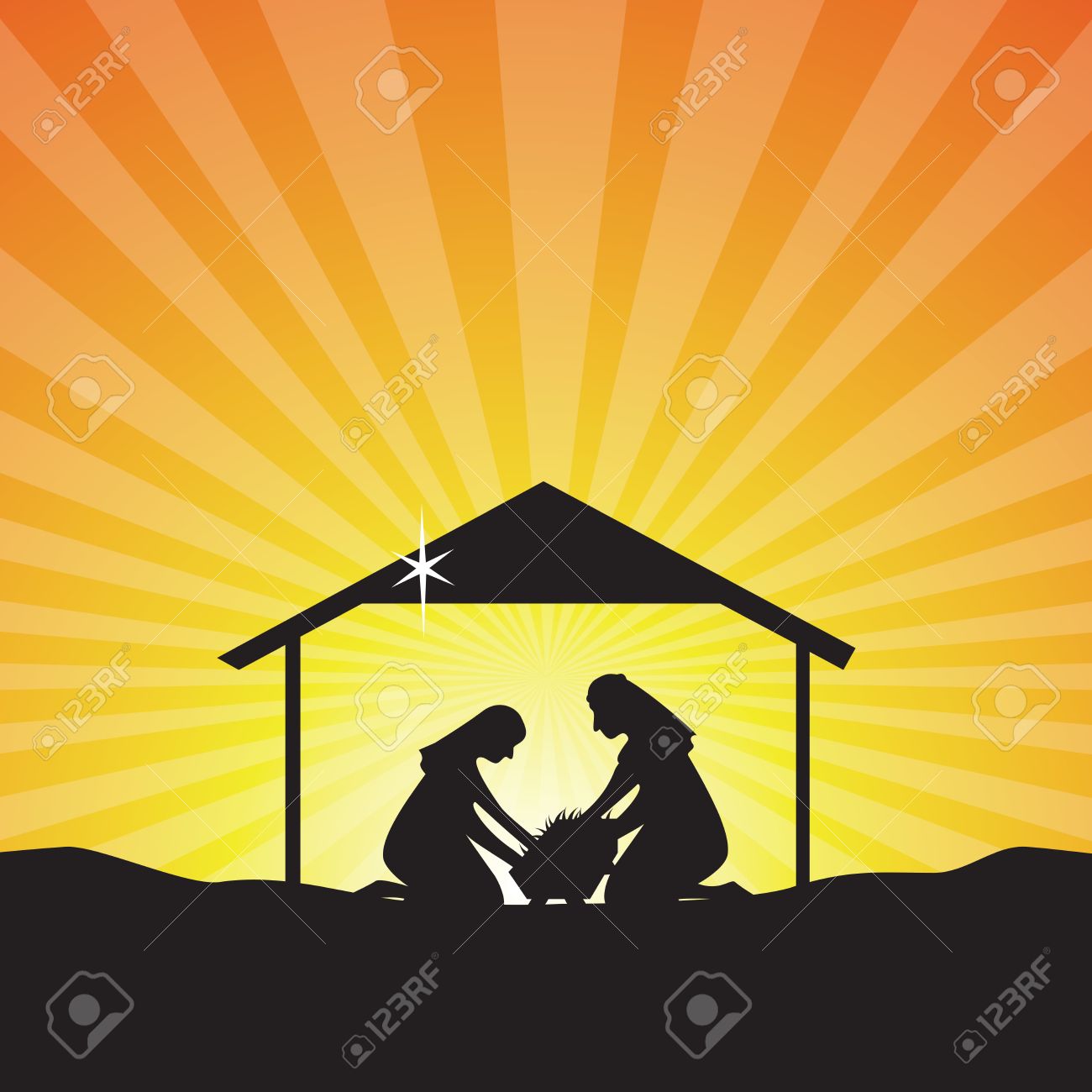 Vettoriale Christian Presepe Di Natale Di Gesu Bambino Nella Mangiatoia Con Maria E Giuseppe Con La Stella Di Cui Sopra Image 42598791