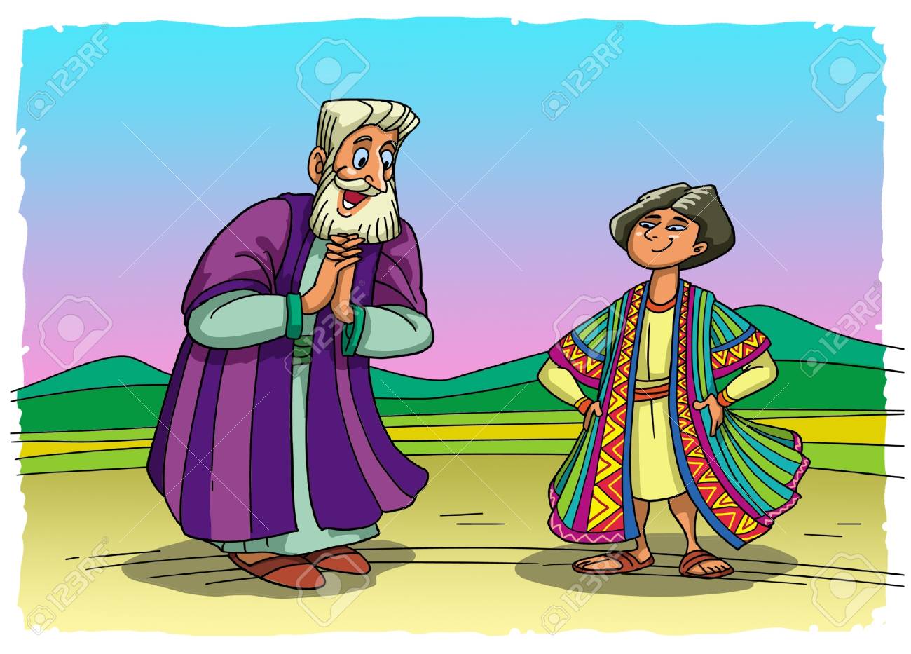 Immagini Stock Giacobbe Dono Al Suo Amato Figlio Piu Giovane Giuseppe Vestiti Meravigliosamente Colorati Image 88066279