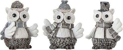 J Line Gufo A Forma Di Gufo 3 Decorazioni Divertenti Statuetta Portafortuna Tema Inverno Neve Amazon It Casa E Cucina