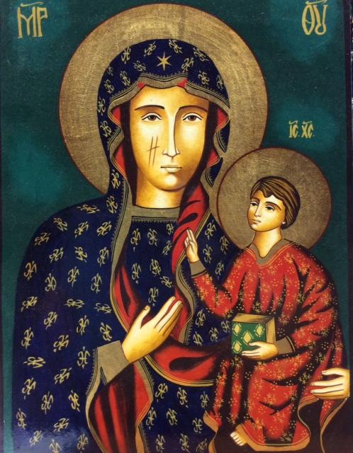 Icona Bizantina Dipinta Madonna Di Czestochowa 23 X 31 Cm