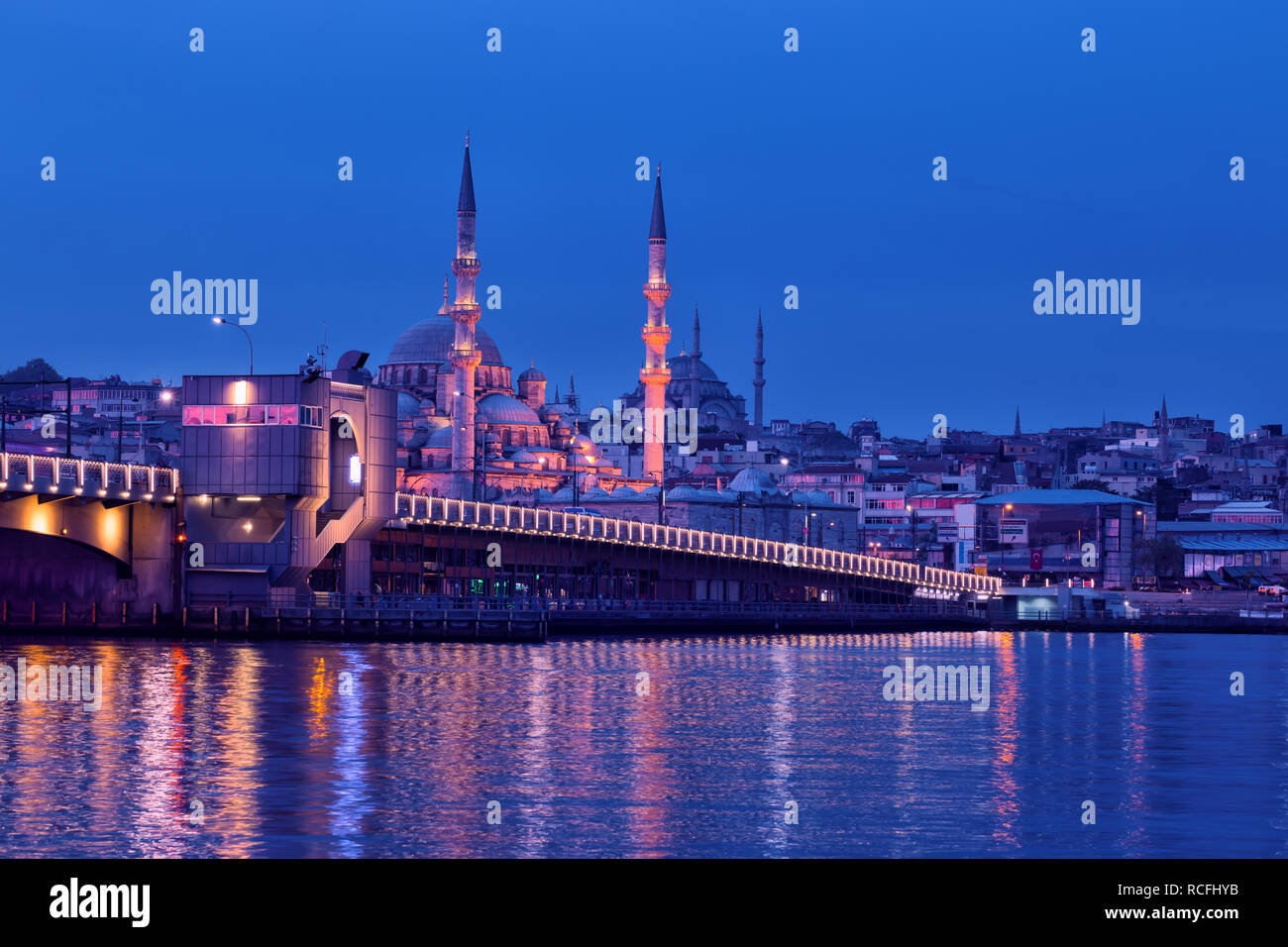 E Il Ponte Di Galata Yeni Cami Di Istanbul Di Notte Foto Stock Alamy