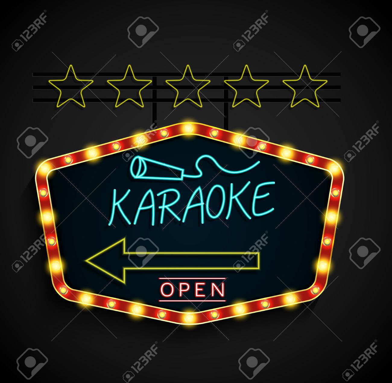 Immagini Stock Brillante Retro Karaoke Luce Banner Su Uno Sfondo Nero Image 51152438