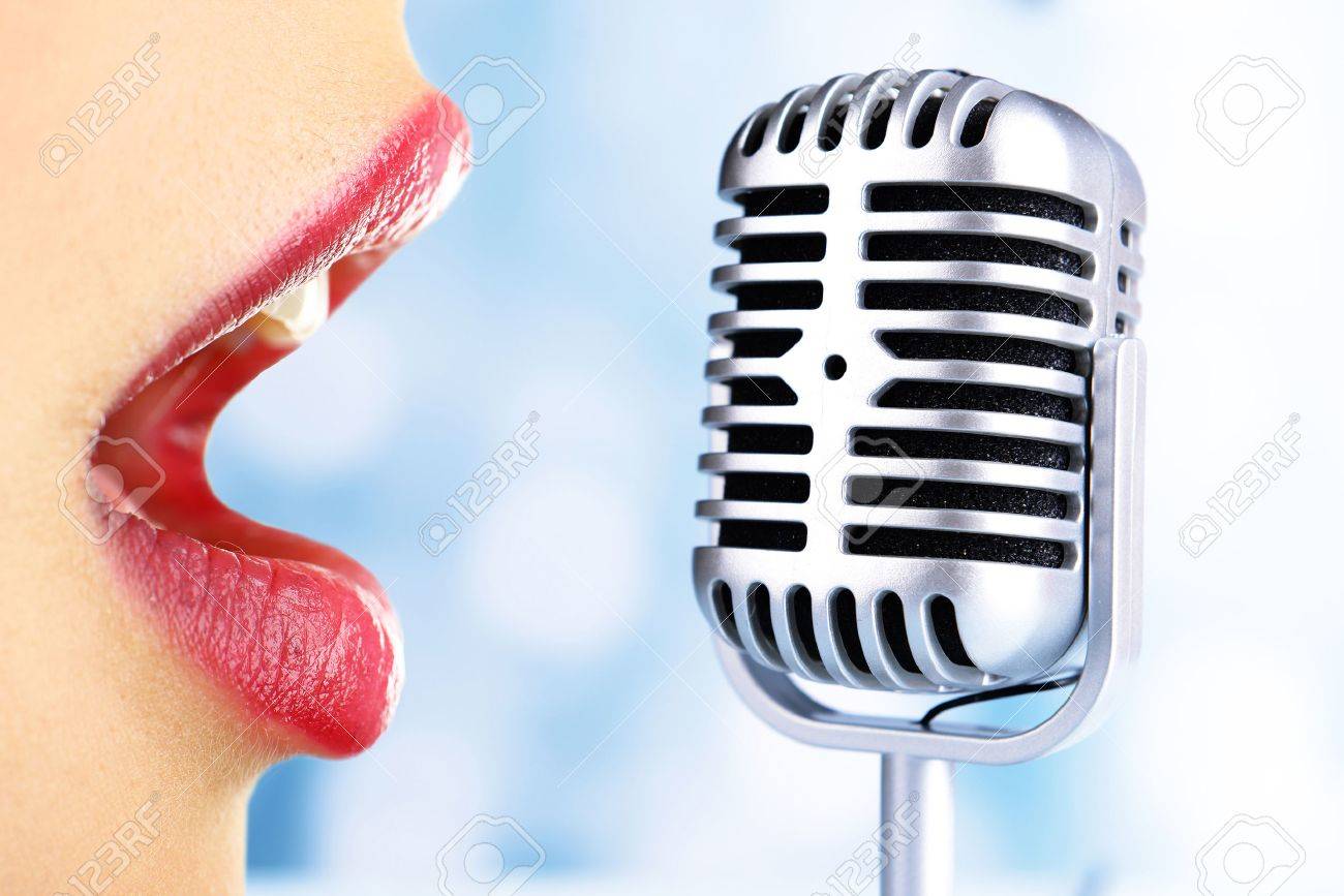 Immagini Stock Donna Di Canto E Retro Microfono Concetto Karaoke Image 35777616