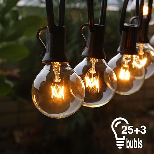 Catena Di Lampadine Con 25 Lampadine A Incandescenza E 3 Lampadina Di Ricambio 25ft 7 5m G40 Luci Da Esterno Giardino Catena Luci Per Esterno E Iinterno Amazon It Illuminazione