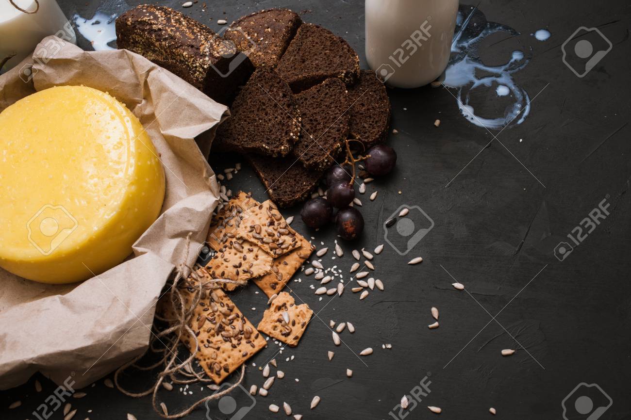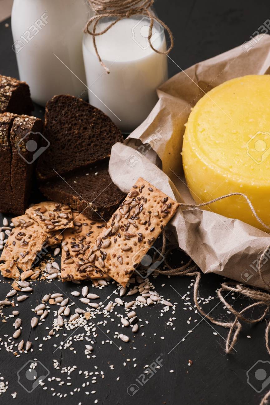 Immagini Stock Latticini Locali Rustici Latte E Formaggio Qualita Di Tipo Pane Con Bottiglie Spazio Libero Upmarket Produce Il Concetto Image 88049845