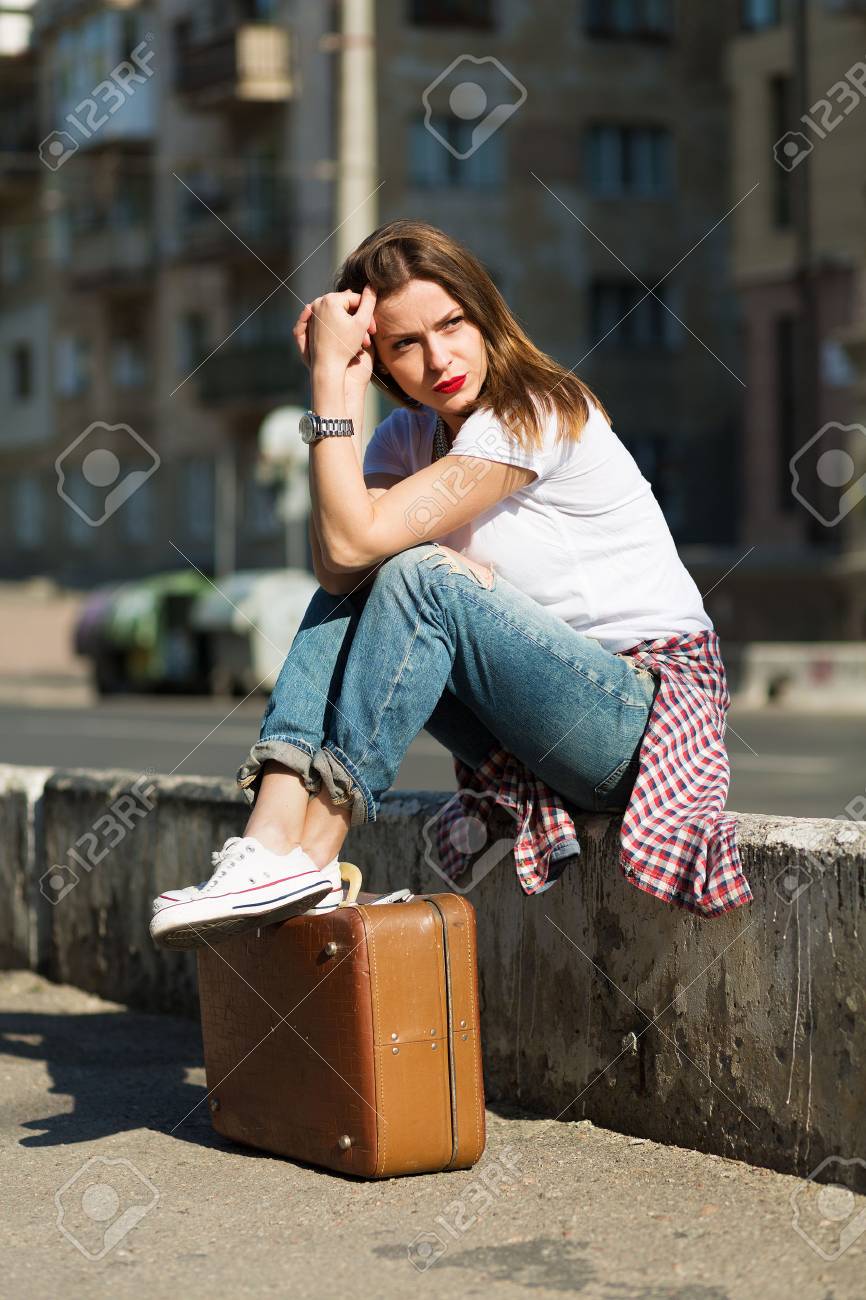 Immagini Stock Bella Ragazza Pronta Per Il Viaggio Immagine Di Look Retro Image 40079522