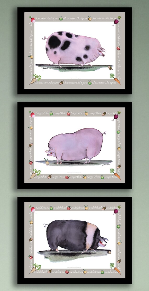 2 Set Di 3 Divertenti Stampe Di Maiale Etsy