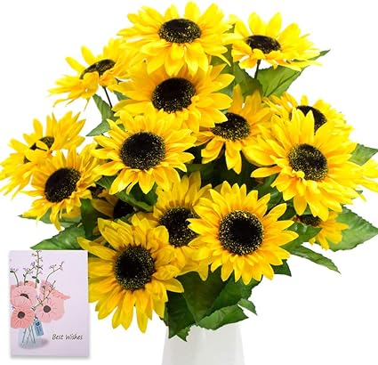 Snailgarden 2 Mazzi Di Girasoli Artificiali Girasole Realistico In Seta Mazzo Di Fiori Finti Con Biglietto Di Auguri Per Regalo Di Disposizione Della Tavola Dell Ufficio Domestico Amazon It Casa E Cucina