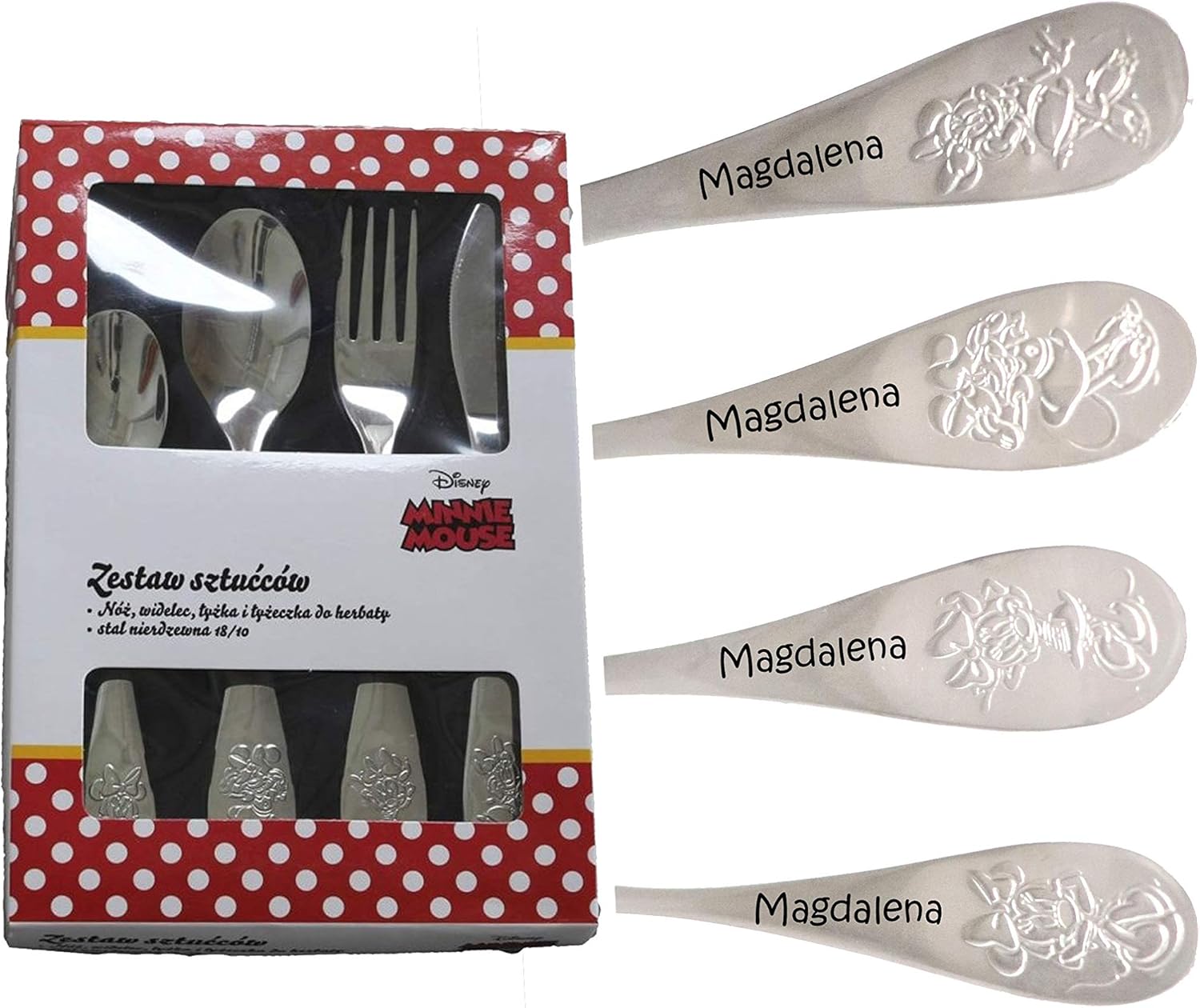 Aplusashop Id Minnie Mouse In Acciaio Inox Motivo Disney Minnie Set Di 4 Posate Per Bambini Con Incisione Personalizzabile Casa E Cucina Stoviglie