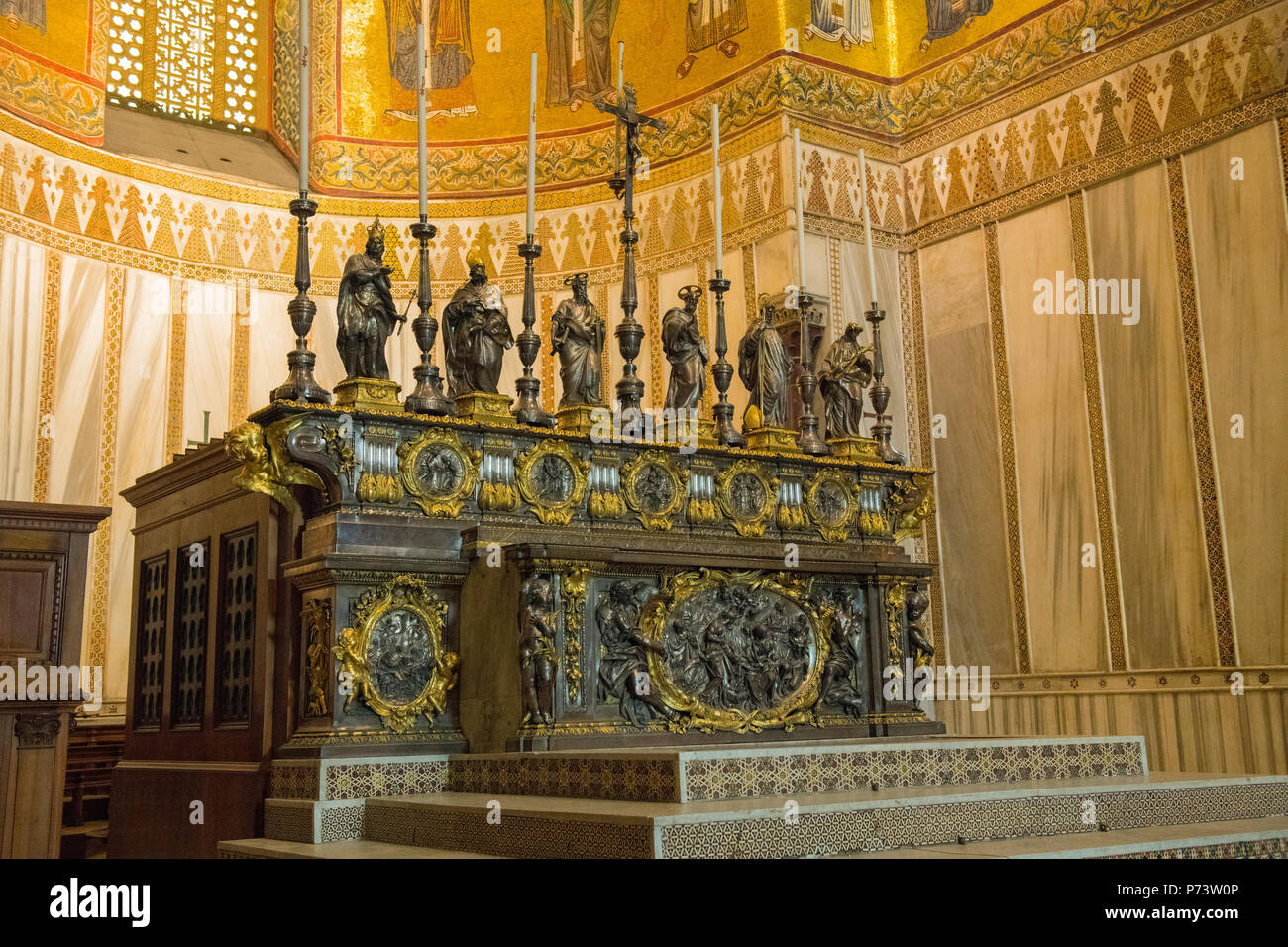 Italy Sicily Arab Norman Style Cathedral Duomo Di Monreale Built 1172 1189 By King William Ii Main Apse Detail Pure Gold Mosaic Ornate Altar Stock Photo Alamy