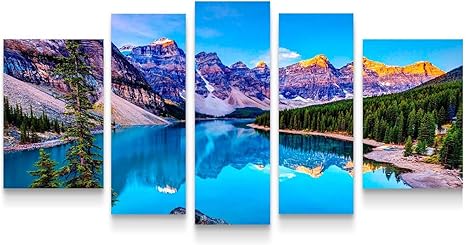 Startonight Quadro Su Tela Lago Di Montagna Quadri Moderni Paesaggio Stampe Incorniciato Grande Set Di 5 Decorazioni Da Parete 90 X 180 Cm Amazon It Casa E Cucina